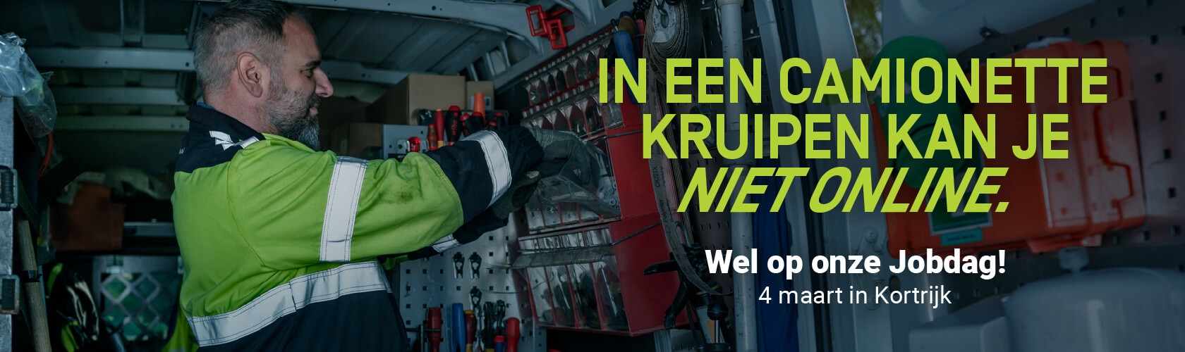 In een camionette kruipen kan je niet online. Wel op onze Jobdag! Kom op 4 maart naar Kortrijk om onze technische jobs beter te leren kennen. Ontdek hoe jij kan bouwen aan de netwerken voor morgen, en aan een carrière vol groeikansen. Meteen solliciteren voor je next-level job? Dat kan! Nieuwsgierig, maar (nog) niet op zoek naar een nieuwe uitdaging? Ook dan ben je heel welkom.